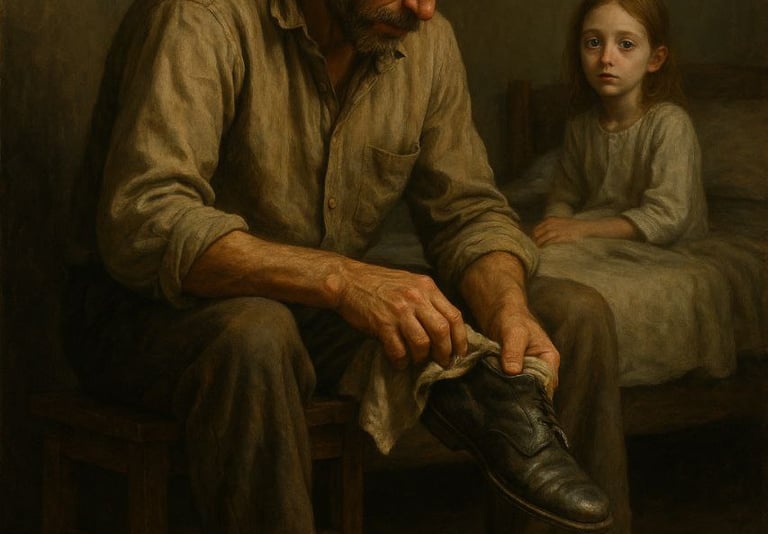 A vida de Caleb havia se tornado uma rotina silenciosa. Depois que sua esposa morreu ao dar à luz a filha deles, ele aprendeu a atravessar cada dia em silêncio. Acordava antes do sol nascer, limpava seus sapatos gastos com um pano fino demais para proteger seus pés, e saía pela porta antes que Ruth, sua filha de dez anos, pudesse fazer perguntas para as quais ele não tinha respostas.