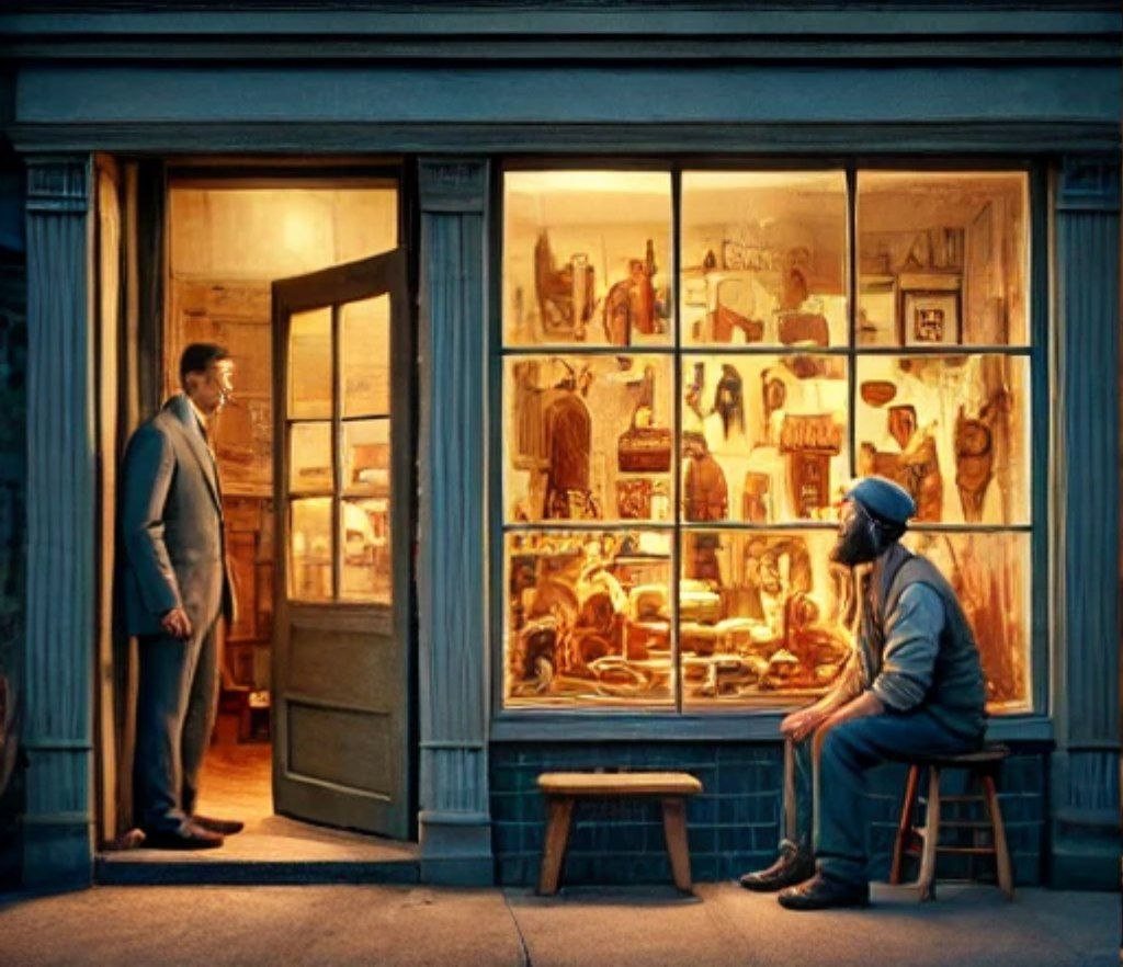 Enquanto caminhava, algo chamou sua atenção para a pequena loja de Darian. Ele parou. As esculturas de madeira expostas na vitrine eram magníficas, feitas com habilidade e dedicação. Mas o que mais o impressionou foi a figura cansada de Darian, sentado do lado de fora, com o rosto carregado de preocupação.