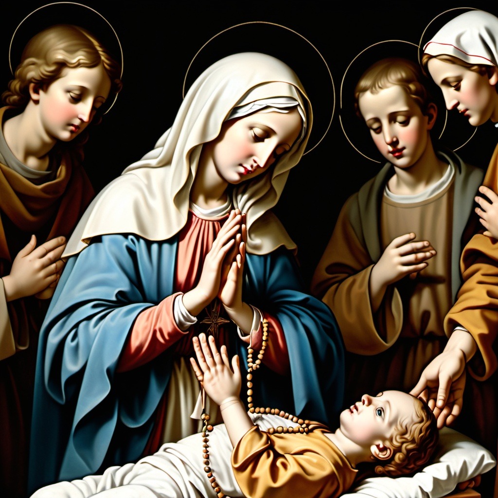 In the garden of a small village, Maria, a young girl of eight years, knelt before a statue of the Virgin Mary. Tears streamed down her face as she clutched a rosary, its wooden beads worn from her nightly prayers. Her younger brother, Daniel, lay gravely ill, and the doctors had given the family little hope. The once lively boy now lay motionless, his tiny body weak and frail. Maria, however, refused to give up.