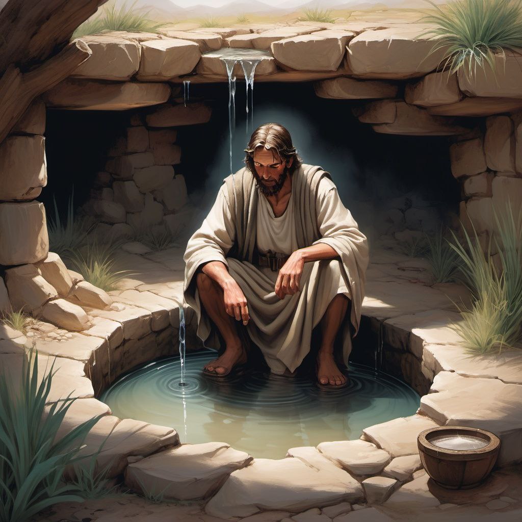 Reunindo suas últimas forças, ele se aproximou e encontrou um poço escondido. Era antigo e coberto de poeira, mas suas águas eram puras e refrescantes.
