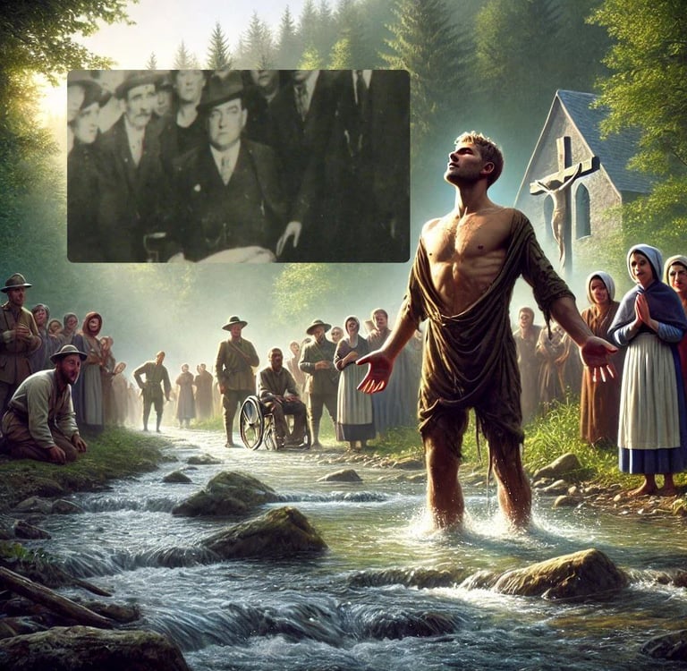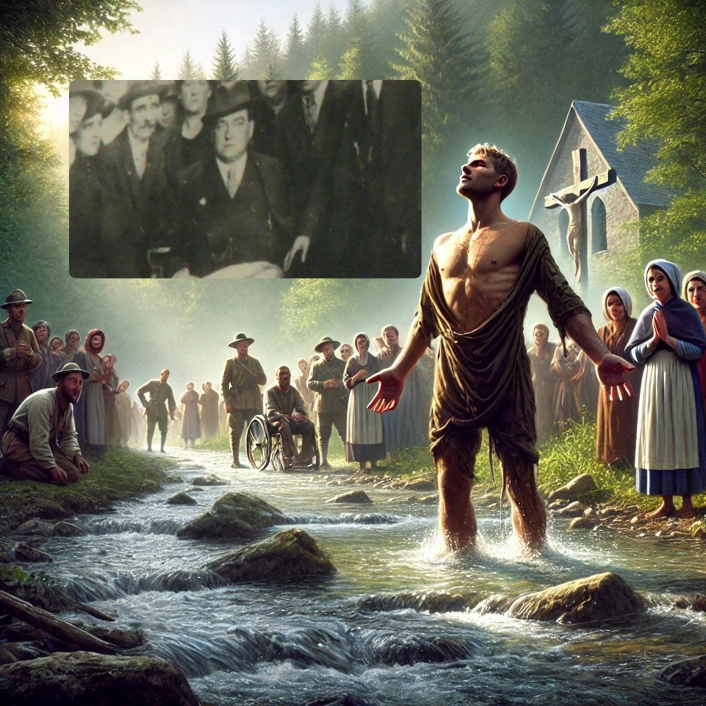 Ele foi carregado, fraco, doente, quebrado. Ele foi baixado nas águas de Lourdes, rezando com cada gota de fé que lhe restava.