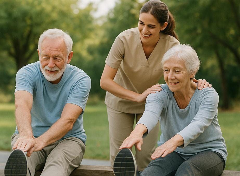 Activities: Chair yoga, heel-to-toe walking, light resistance exercises